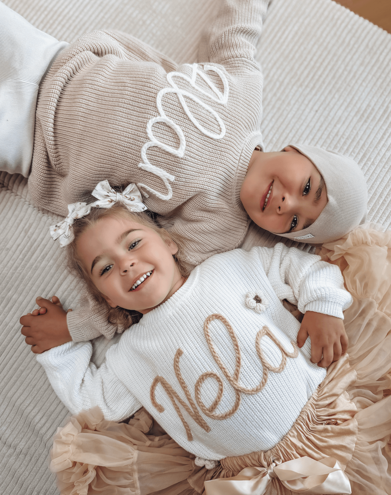 Du kannst den Namen oder ein Wunschwort ganz einfach beim Bestellvorgang eingeben. Wir sticken deine Personalisierung liebevoll und sorgfältig direkt in den Pullover. So entsteht ein echtes Unikat.