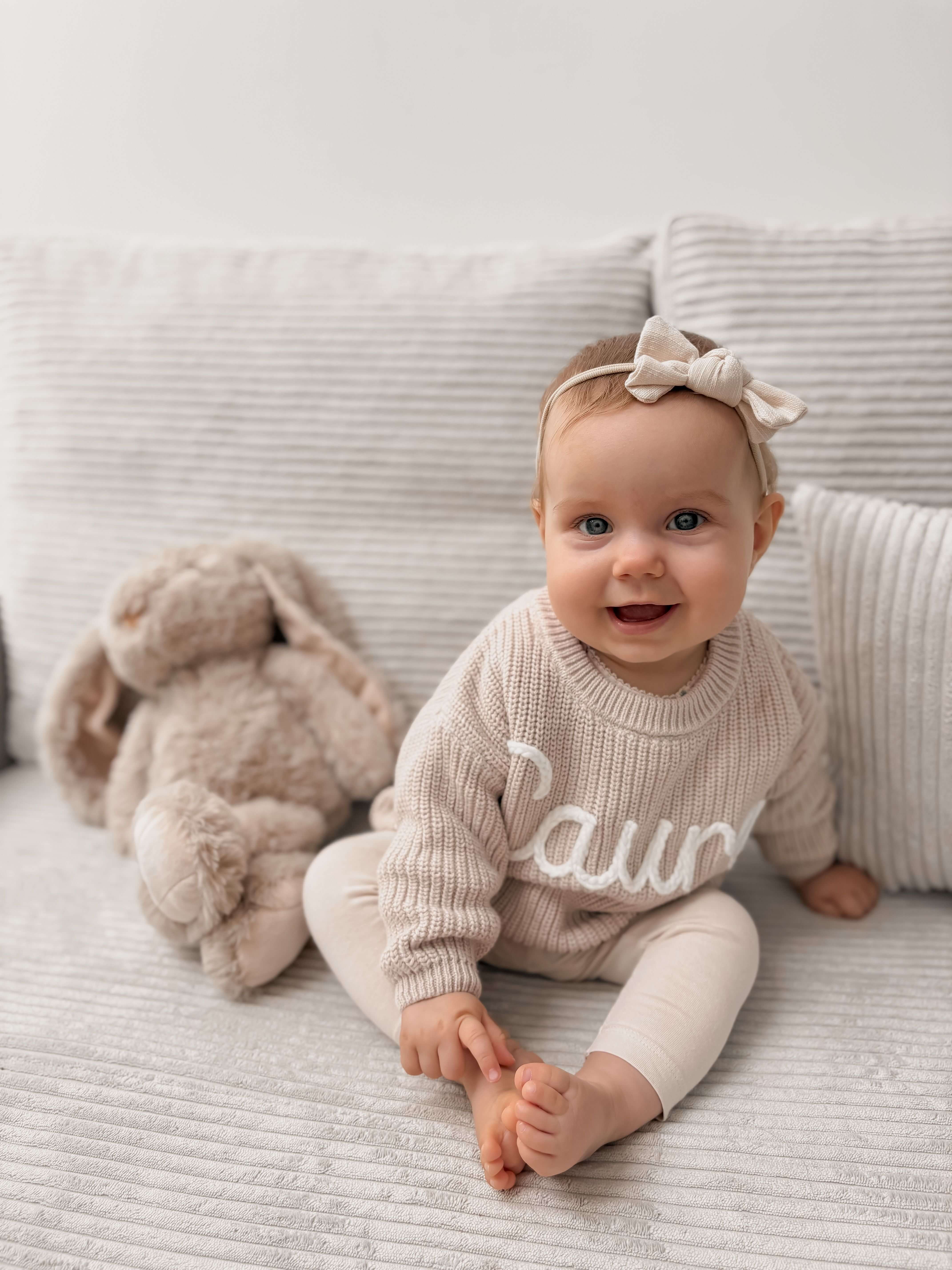 Imagine your little one snuggling up in a unique, hand-knitted sweater made especially for him or her. Our personalized baby sweater, made from 100% pure cotton, is more than just a piece of clothing—it's a symbol of love and care.